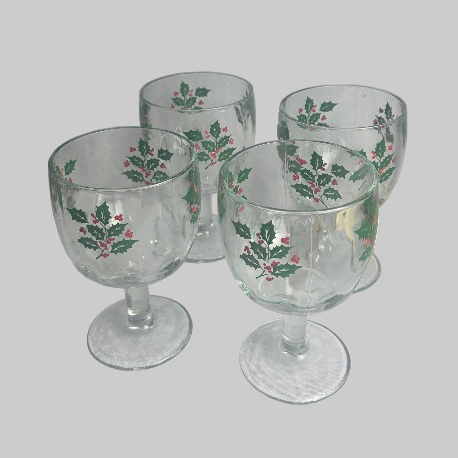 Set of 4 Vintage Bartlett-Collins “Thumbprint” Holly Berry Goblets – Mid-Century Christmas Glassware