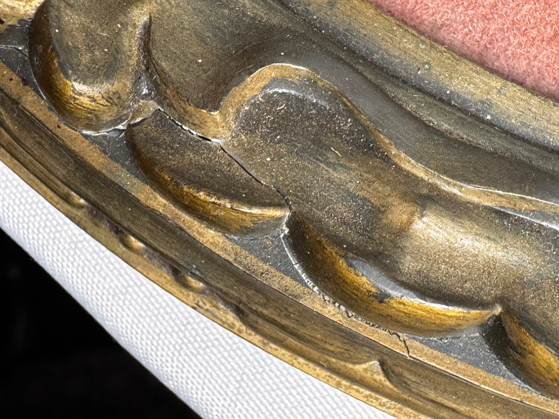 • Condition: Consistent with its vintage age, showing patina on the finish and minor stress cracks in the molded decoration.