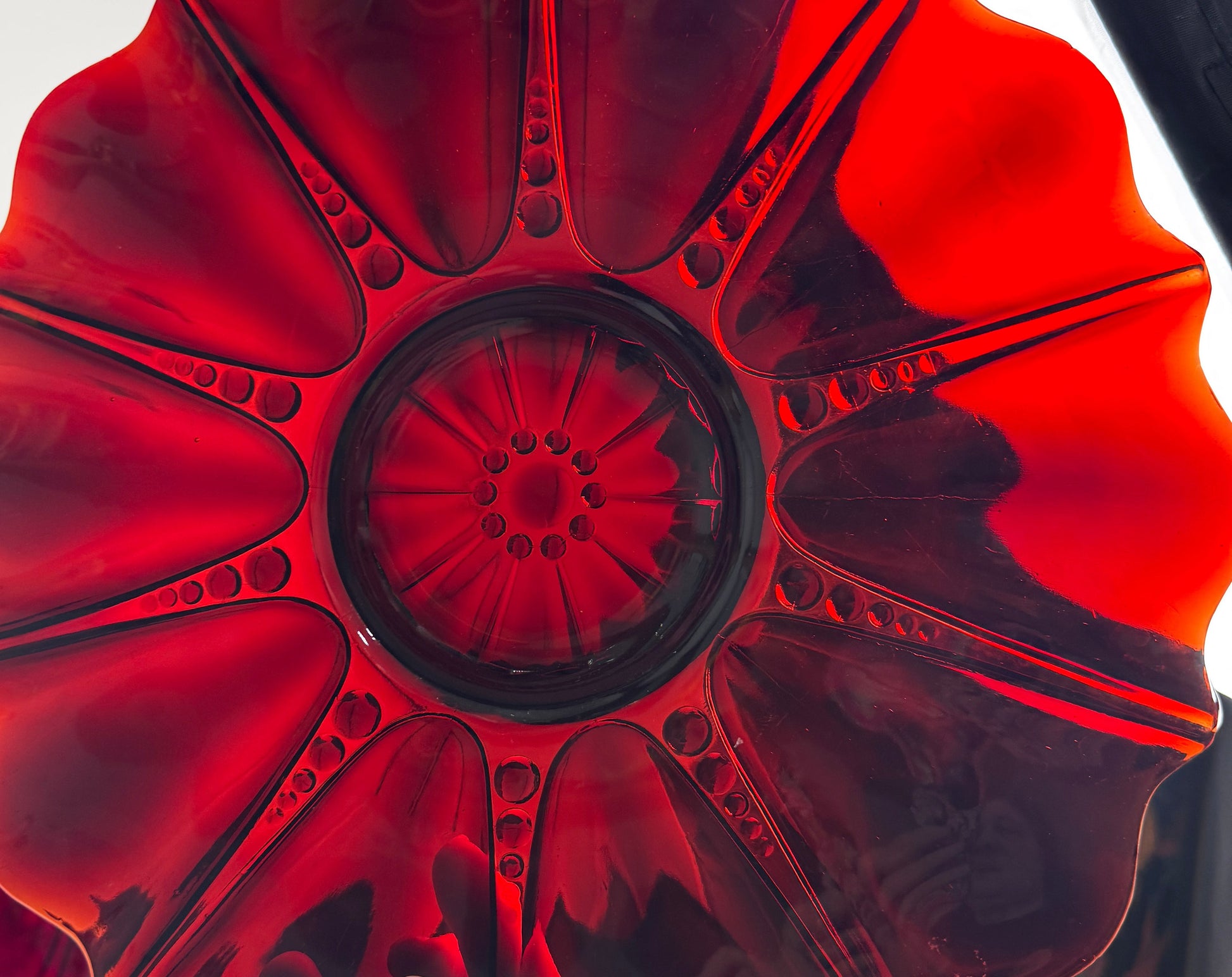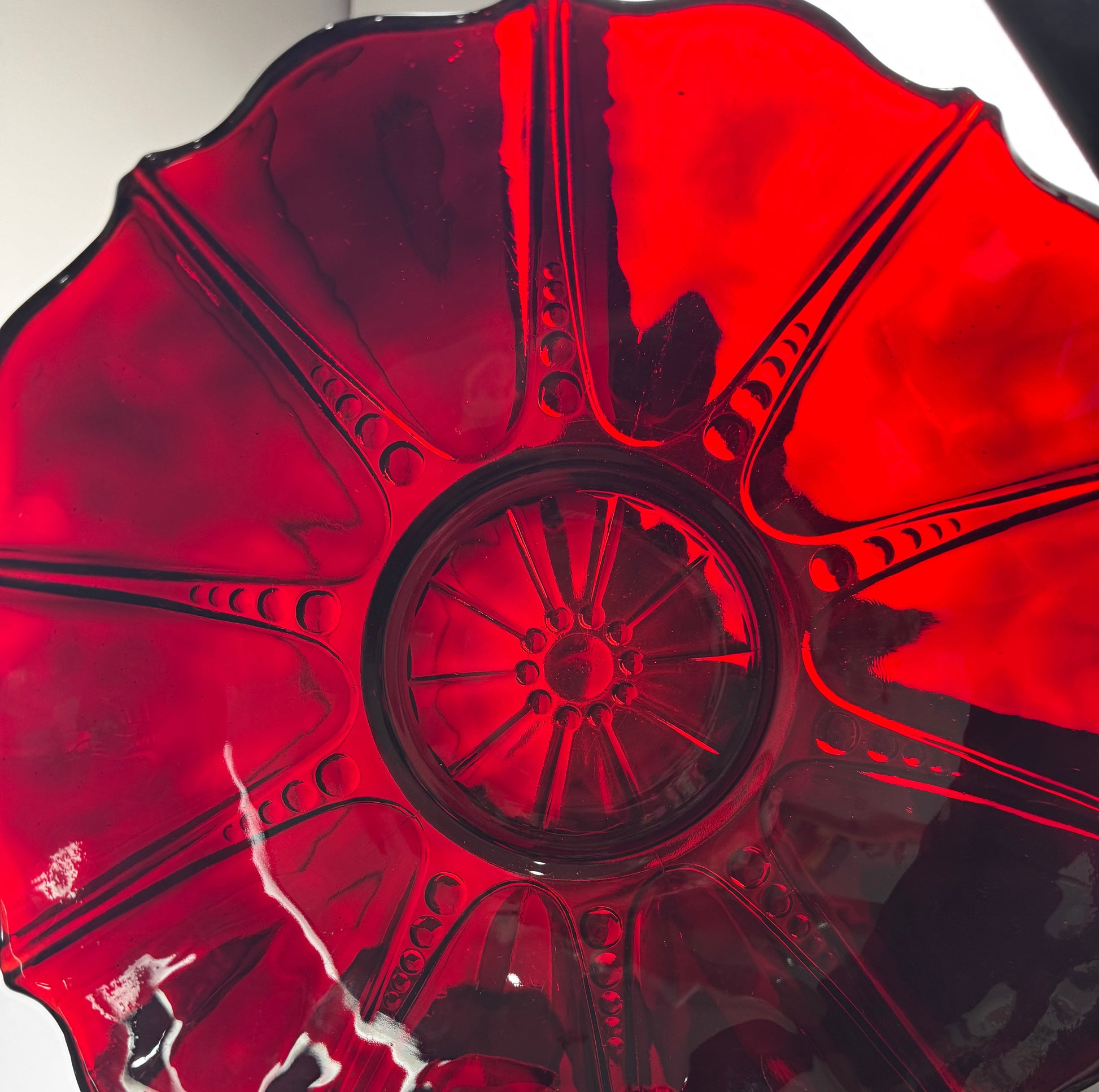 • Material: Authentic "Royal Ruby" Depression Glass.