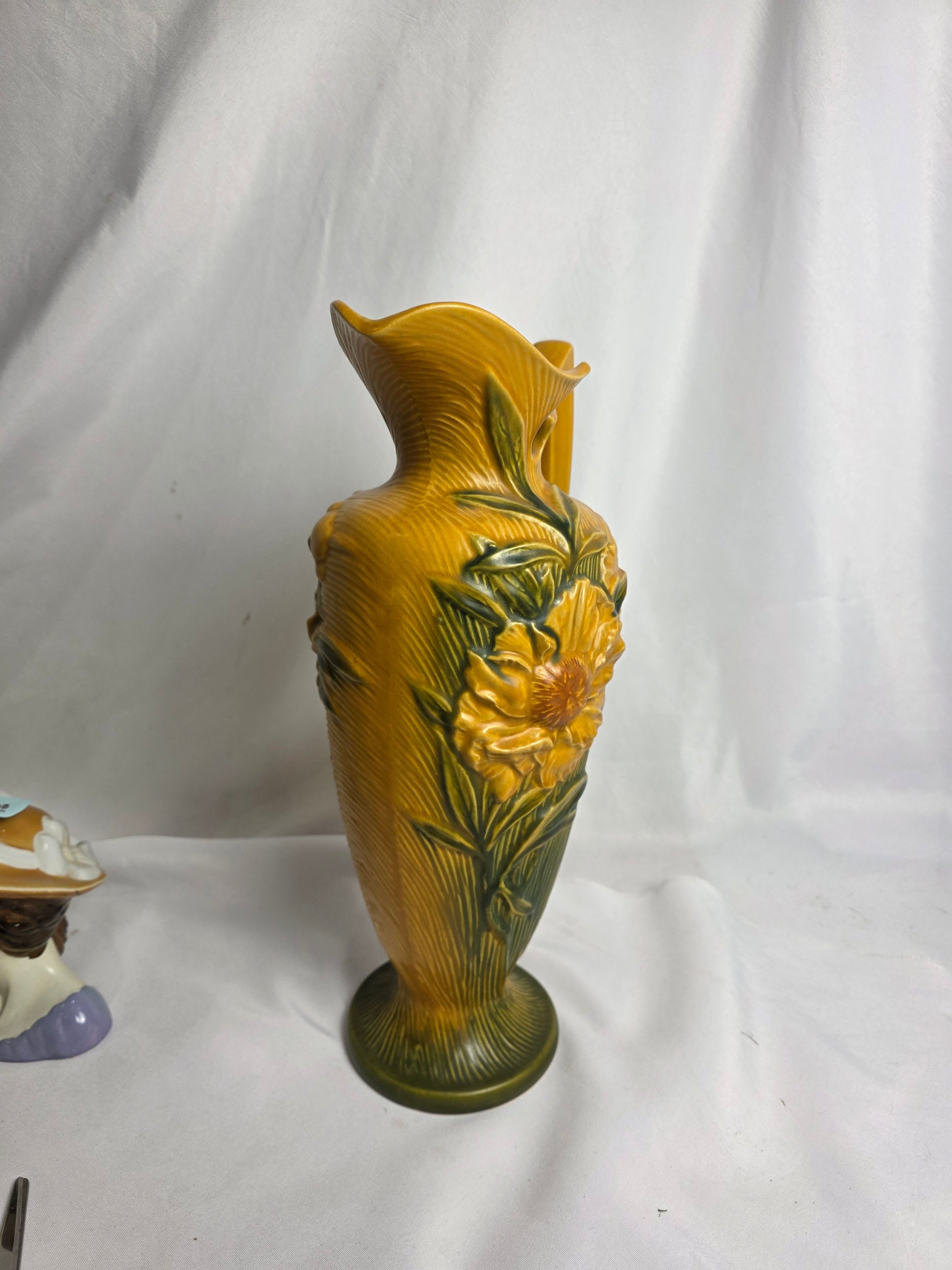 This Roseville pitcher vase beautifully embodies the artistry and craftsmanship that makes Roseville pottery so highly collectible. A must-have for serious collectors or those looking to add a striking piece of American art pottery history to their home decor.