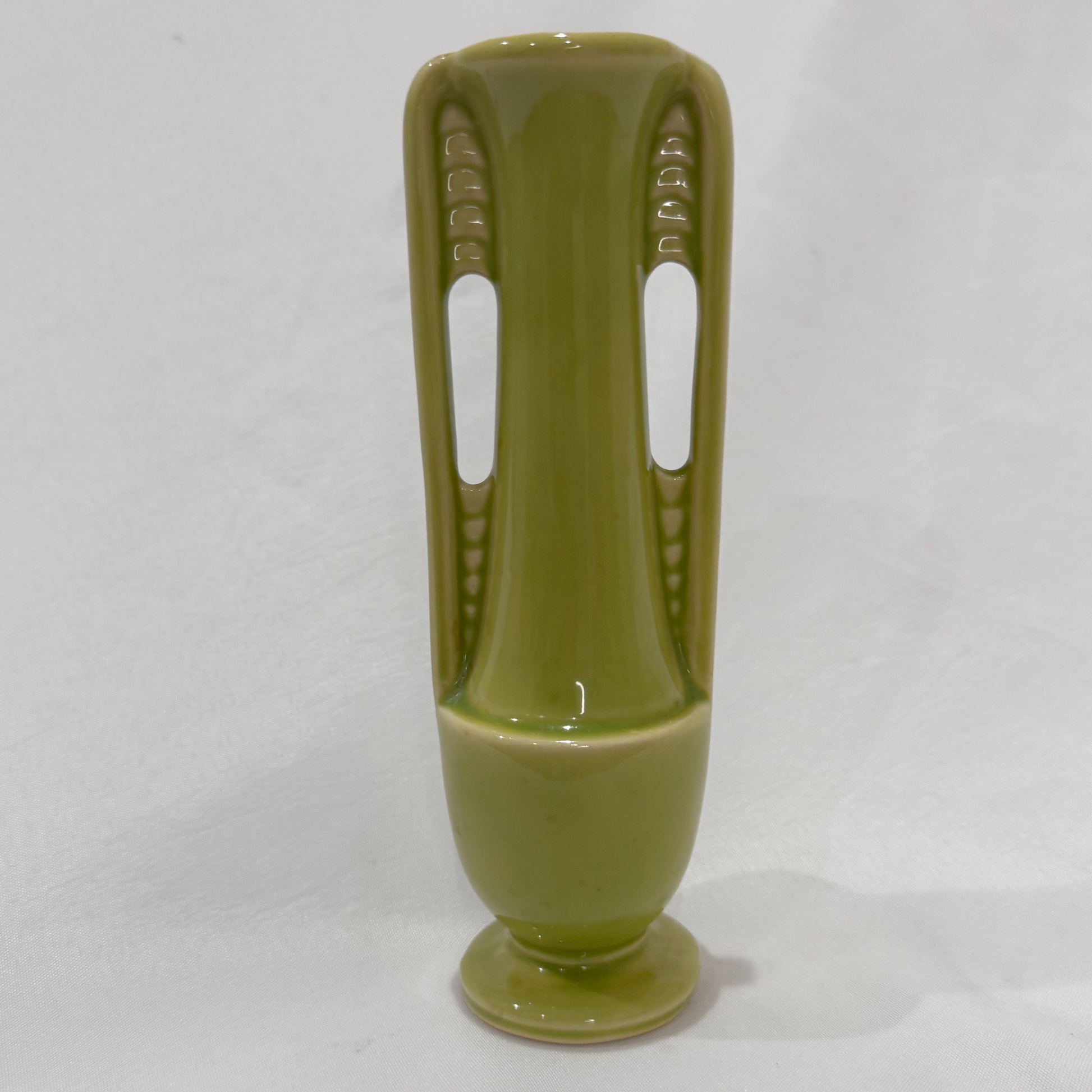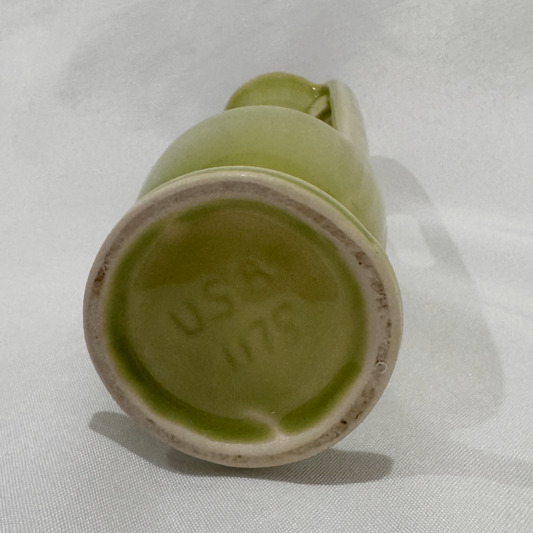 embrace the understated elegance of the Art Deco era with this vintage Shawnee Pottery vase. Standing at 8 inches tall, this piece showcases the clean lines and subtle sophistication characteristic of the period. The muted green glaze adds a touch of tranquil beauty, allowing the vase's elegant form to truly shine. Proudly Made in the USA by Shawnee Pottery and marked with the #1178 mold number, this vase is a tangible piece of American ceramic history, perfect for adding a touch of refined vintage charm to your home.