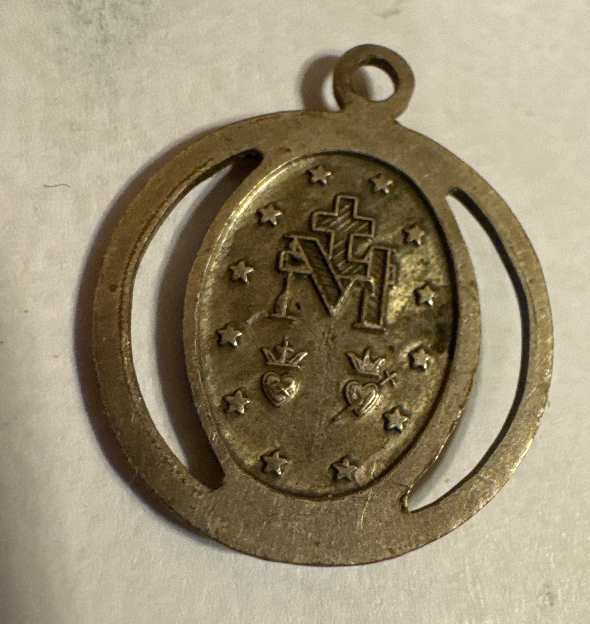 Channel the power of the Divine Feminine with this vintage open-work amulet. In the secret history of New Orleans spirituality, the Miraculous Medal is often revered not just as a Catholic icon, but as a symbol of Erzulie, the spirit of love, beauty, and deep emotion. Observe the serpent being crushed beneath her feet—a classic ward against 'crossed conditions,' jealousy, and enemies who wish you harm. With its rich, unpolished patina, this piece carries the heavy energy of decades of devotion. Wear it close to the heart to attract sweetness and grace, or place it on your altar to petition for protection against those who speak with a forked tongue.