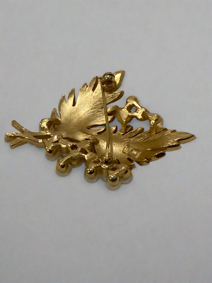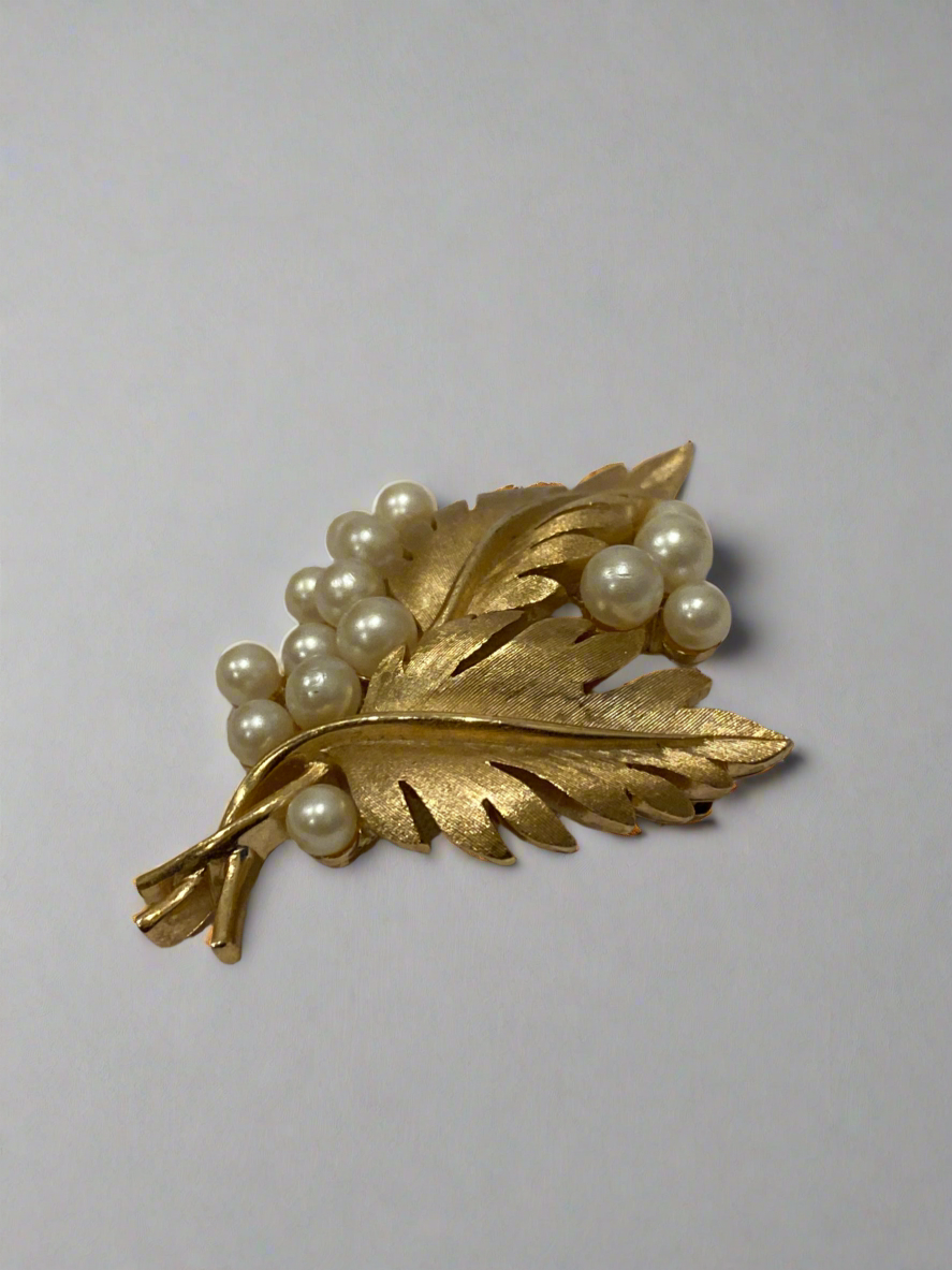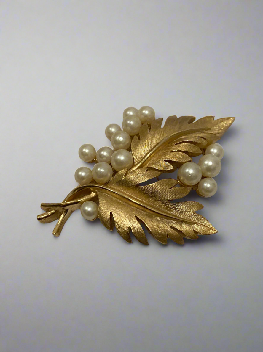 Vtg Trifari Leaf and Faux Pearl Brooch