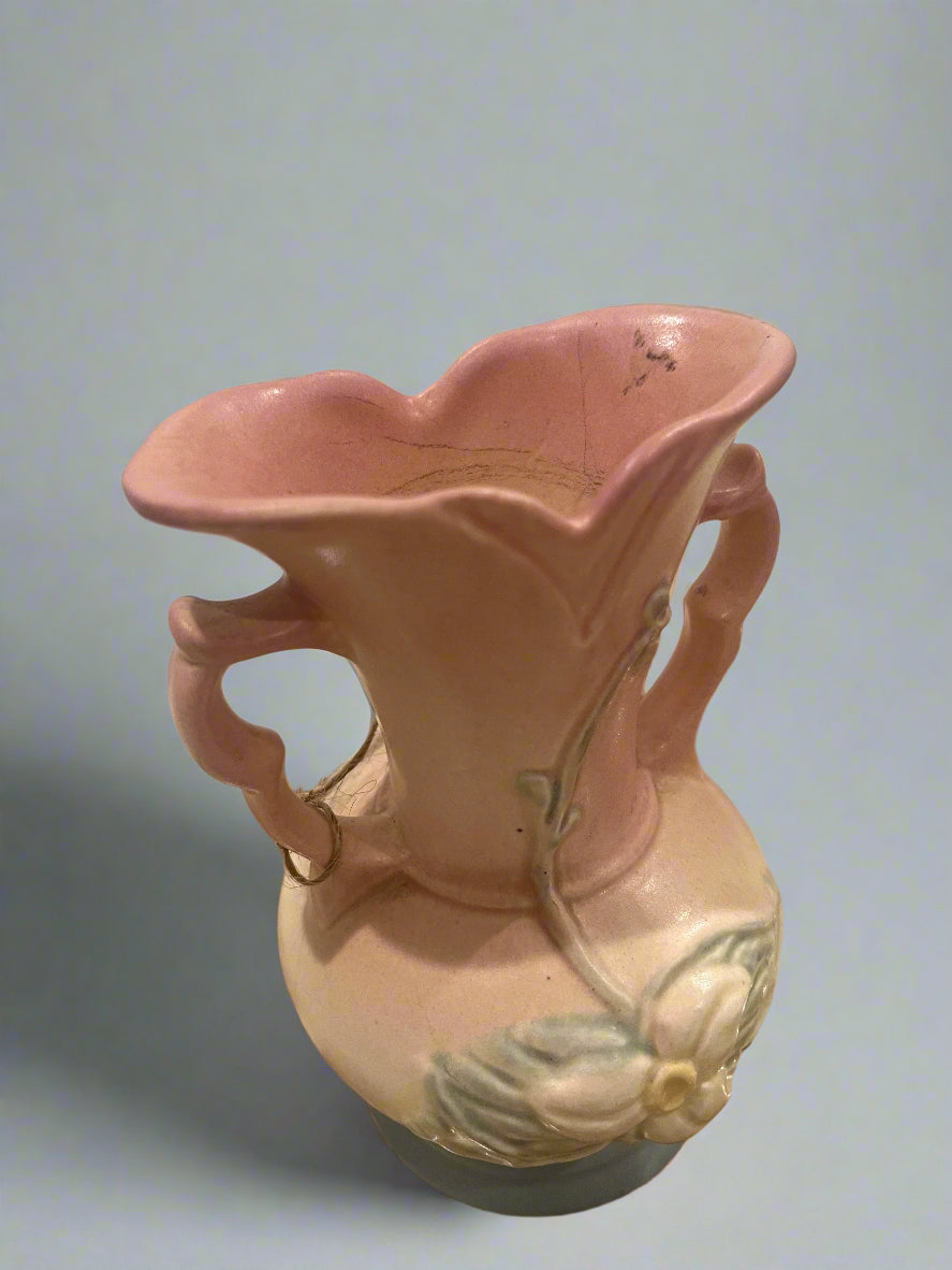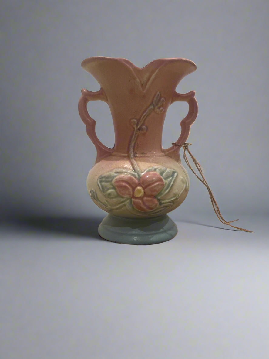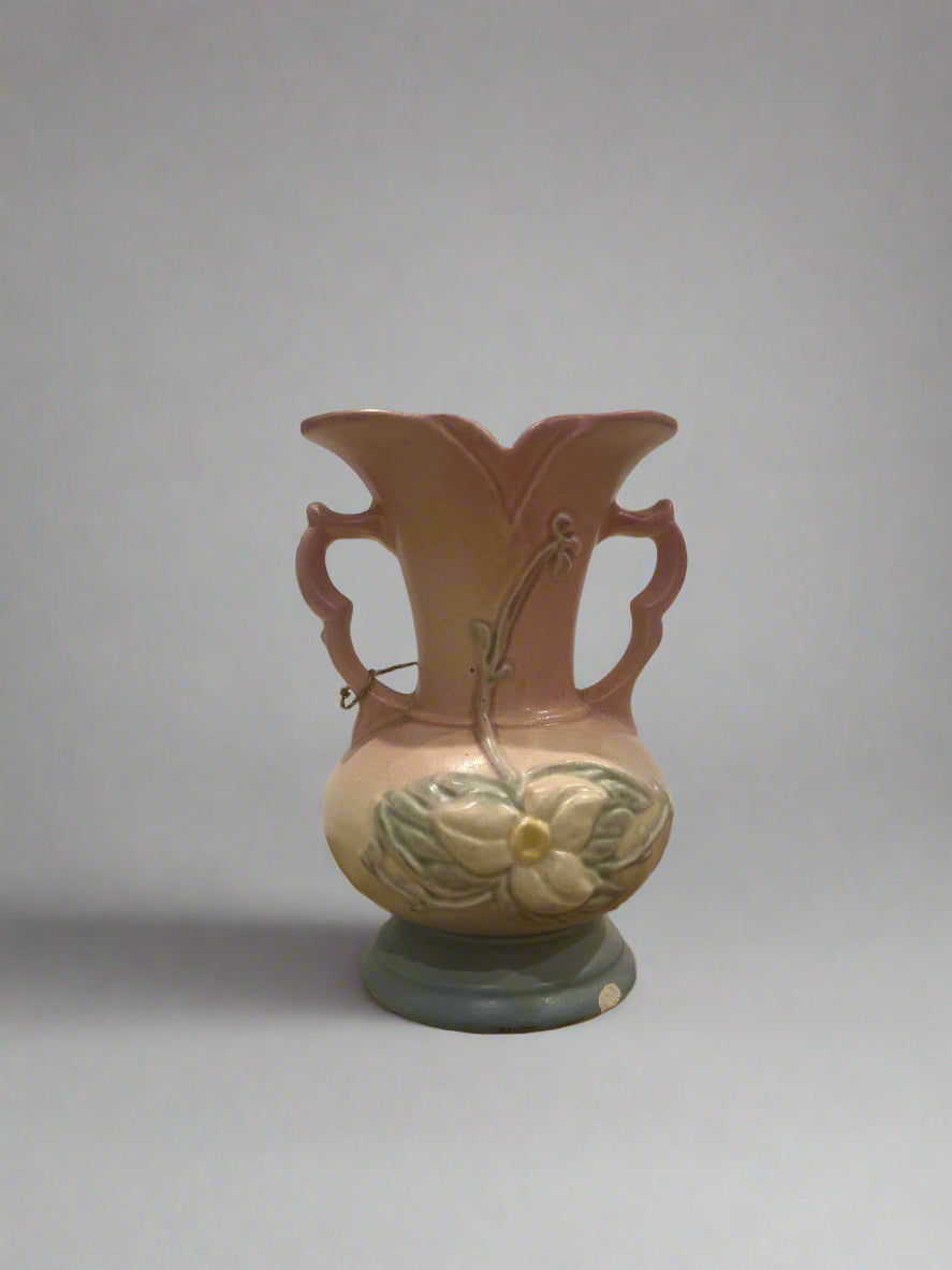 Vintage Hull Pottery Wildflower Vase, the W-1-5 1/2 model. Double handed design with embossed and hand-painted floral motifs.