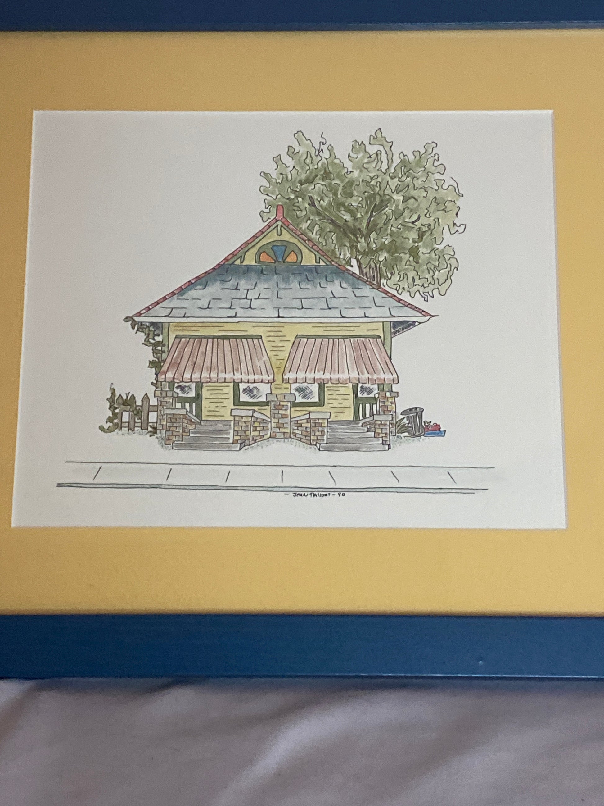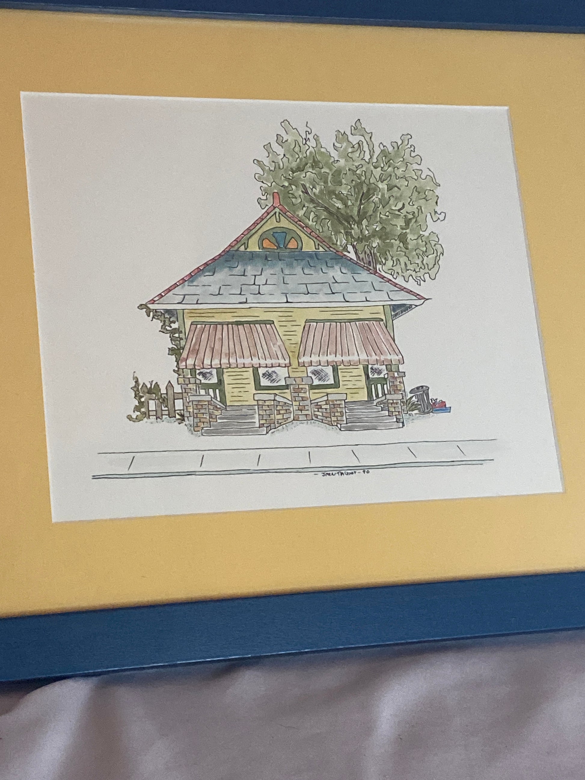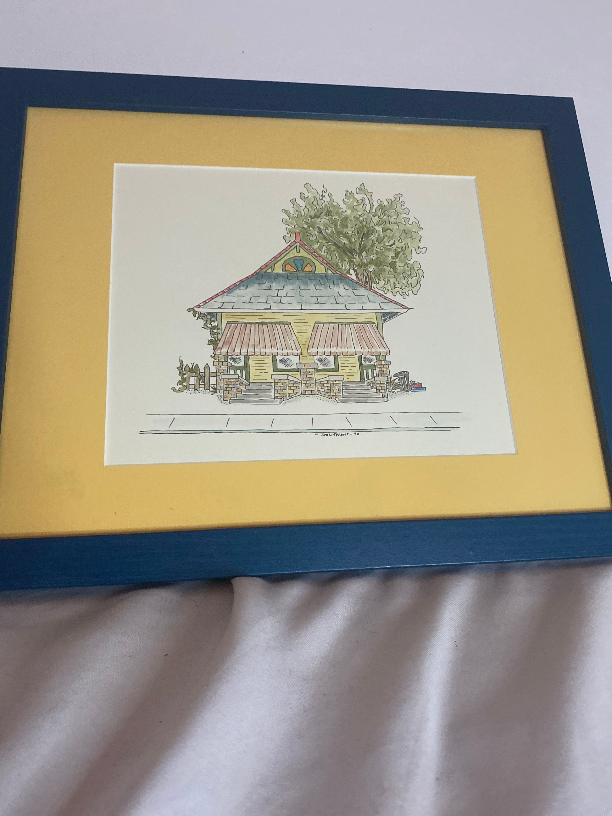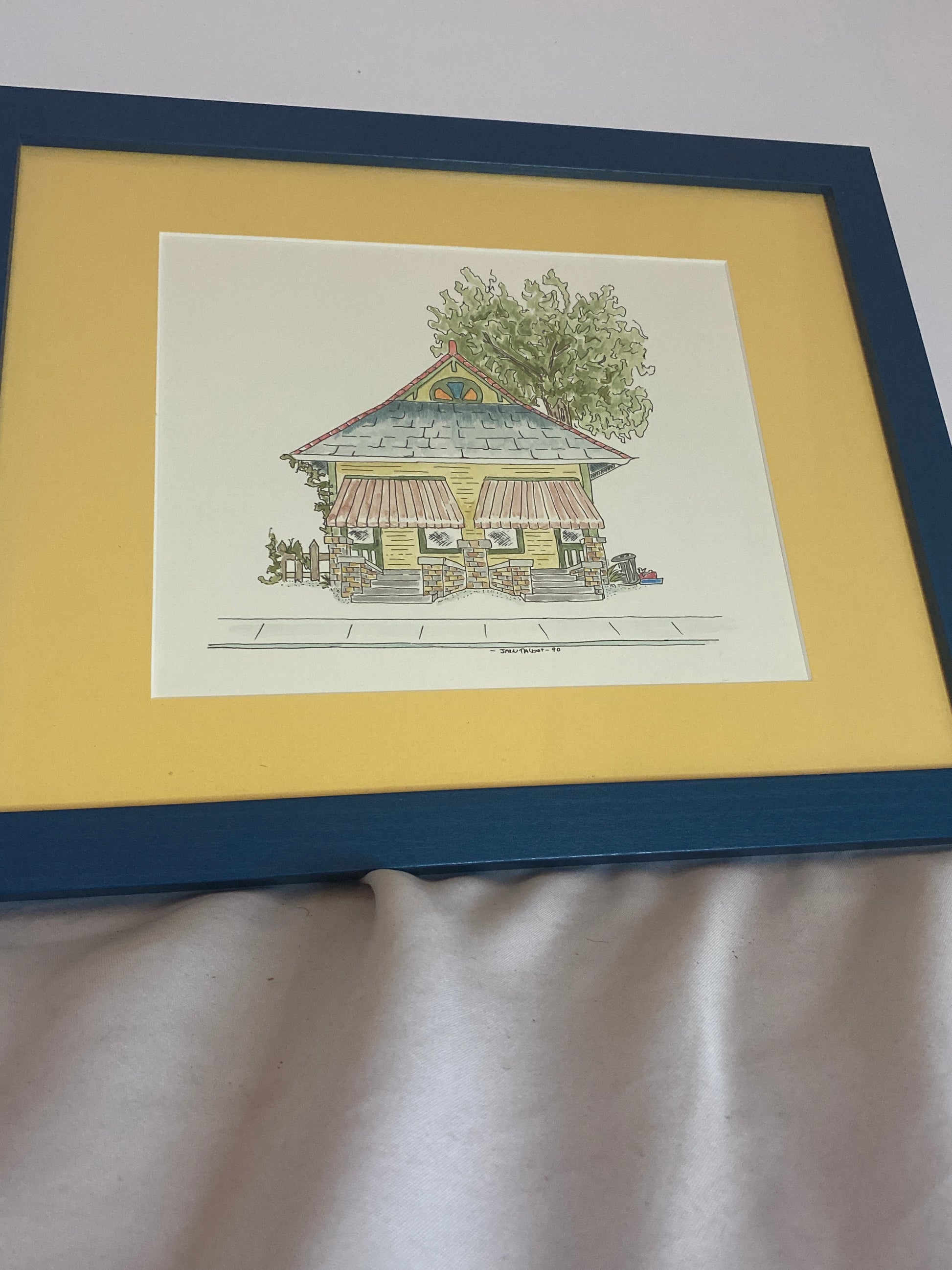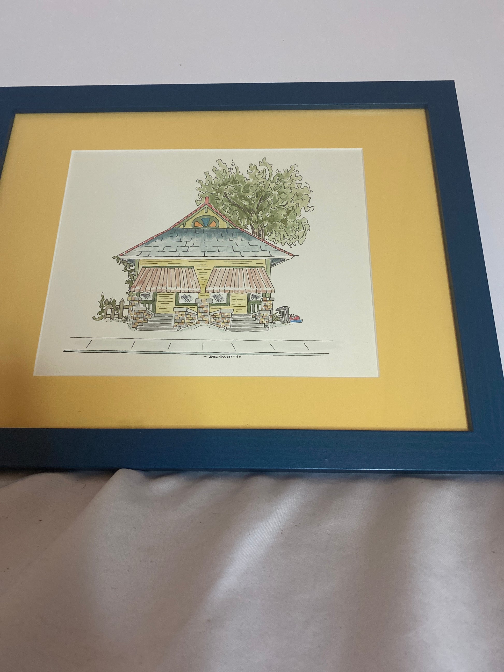 This expertly crafted watercolor painting depicts a charming house, capturing its unique details and character. Perfect for adding a touch of classic elegance to any room, this piece showcases the beauty and nostalgia of home.