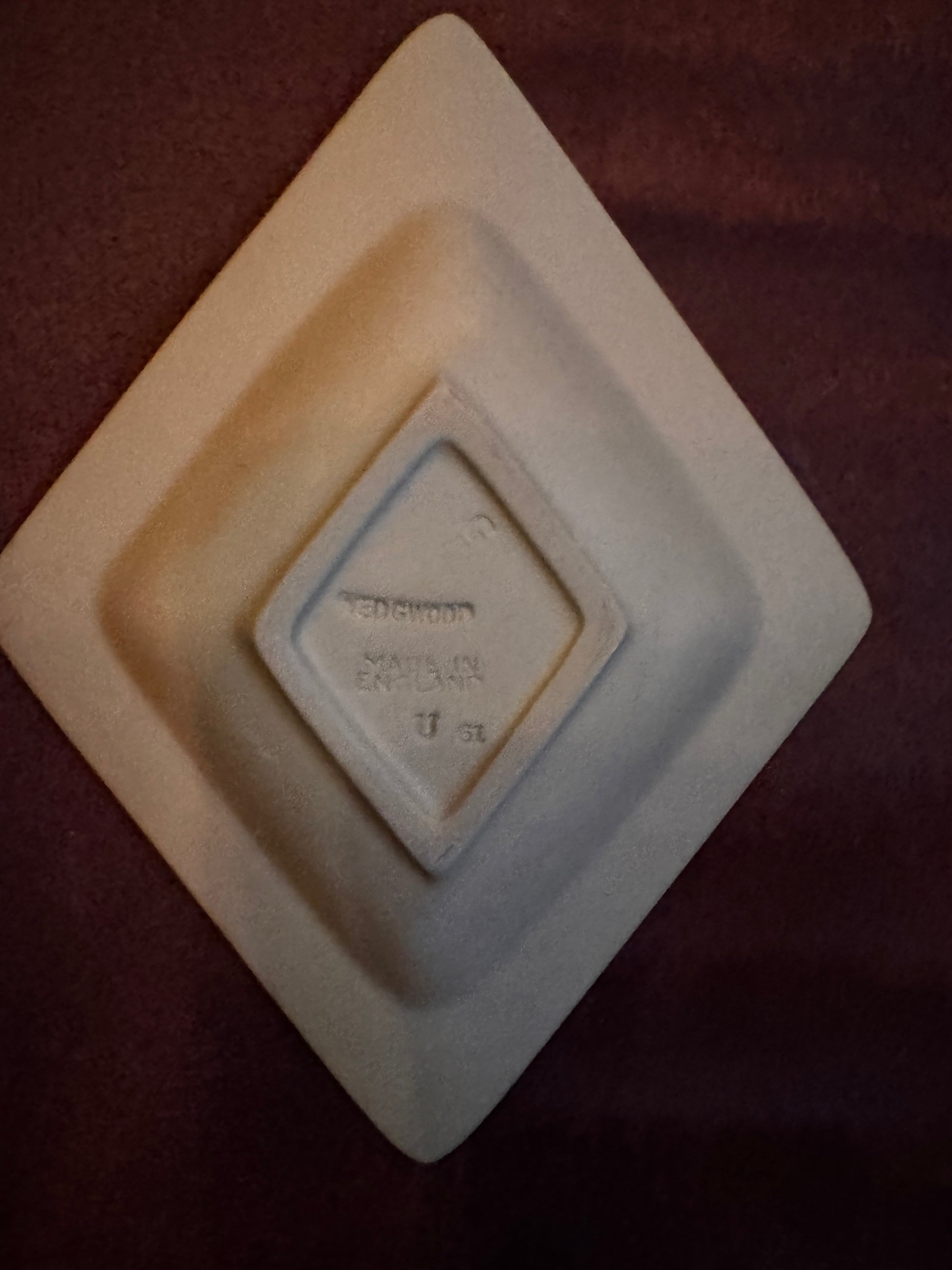 - Shape: Diamond-shaped, with dimensions around 5-6 inches at its widest points of Origin: Produced by Wedgwood in England.